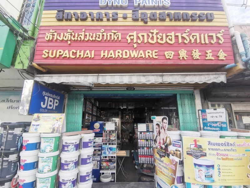 ห้างหุ้นส่วนจำกัด ศุภชัย ฮาร์ดแวร์ ร้านขายสี ลาดพร้าว ขายส่งสี ตรา เจบีพี (JBP), ไดโน (dyno) รัสต์โอเลี่ยม (RUST-OLEUM), เบเยอร์ (beger), เซฟโก้ (sefco), สีไอซีไอ (ICI) สีทีโอเอ (TOA), ดีดี โพลียูเรเทน (DD polyurethane) สำหรับทาอาคาร สีย้อมไม้ ทาถนน (สะท้อนแสง, ไม่สะท้อนแสง) สีพ่นอุตสาหกรรม, สีทนความร้อน, สีอีพ็อกซี่, สีโคลกัลวาไนซ์ สีกันสนิม สีสเปรย์, สีกันรั่วกันซึม, และ เครื่องมืออุปกรณ์ของใช้สำหรับช่างไฟฟ้า ช่างประปา ช่างก่อสร้าง ช่างทาสี ร้านอยู่ติดกับธนาคาร ธกส ถึงก่อน ซอยลาดพร้าว 76